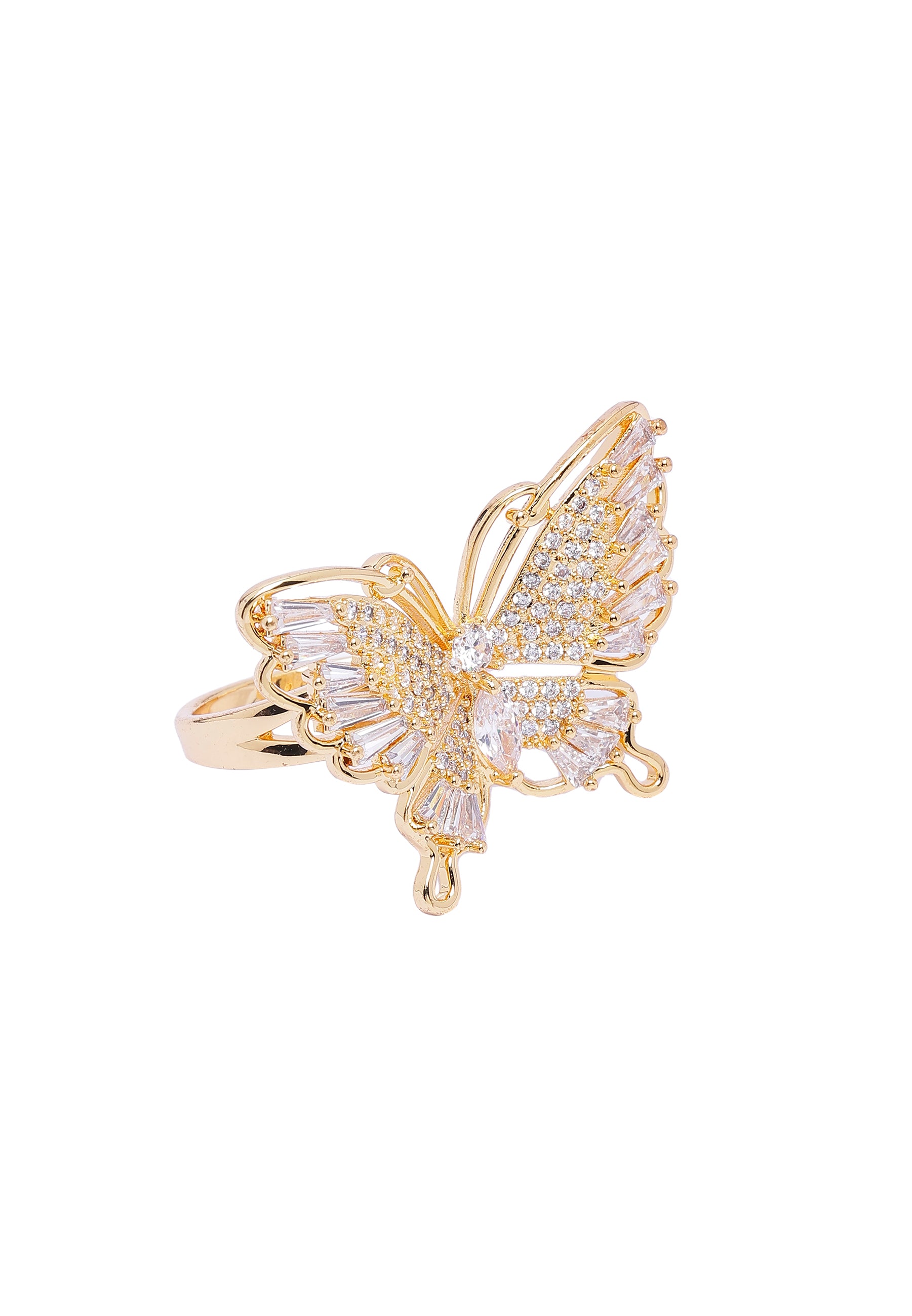 Timanteista tehdyt siivet omaava perhonen, joka lepattaa sormellasi. Tämä upea sormus vangitsee tuon taian monimutkaisella muotoilullaan ja häikäisevällä kivivalikoimallaan. Se on näyttävä koru, joka on sekä elegantti että leikkisä, täydellinen lisäämään ripauksen kimallusta ja persoonallisuutta ilmeeseesi.