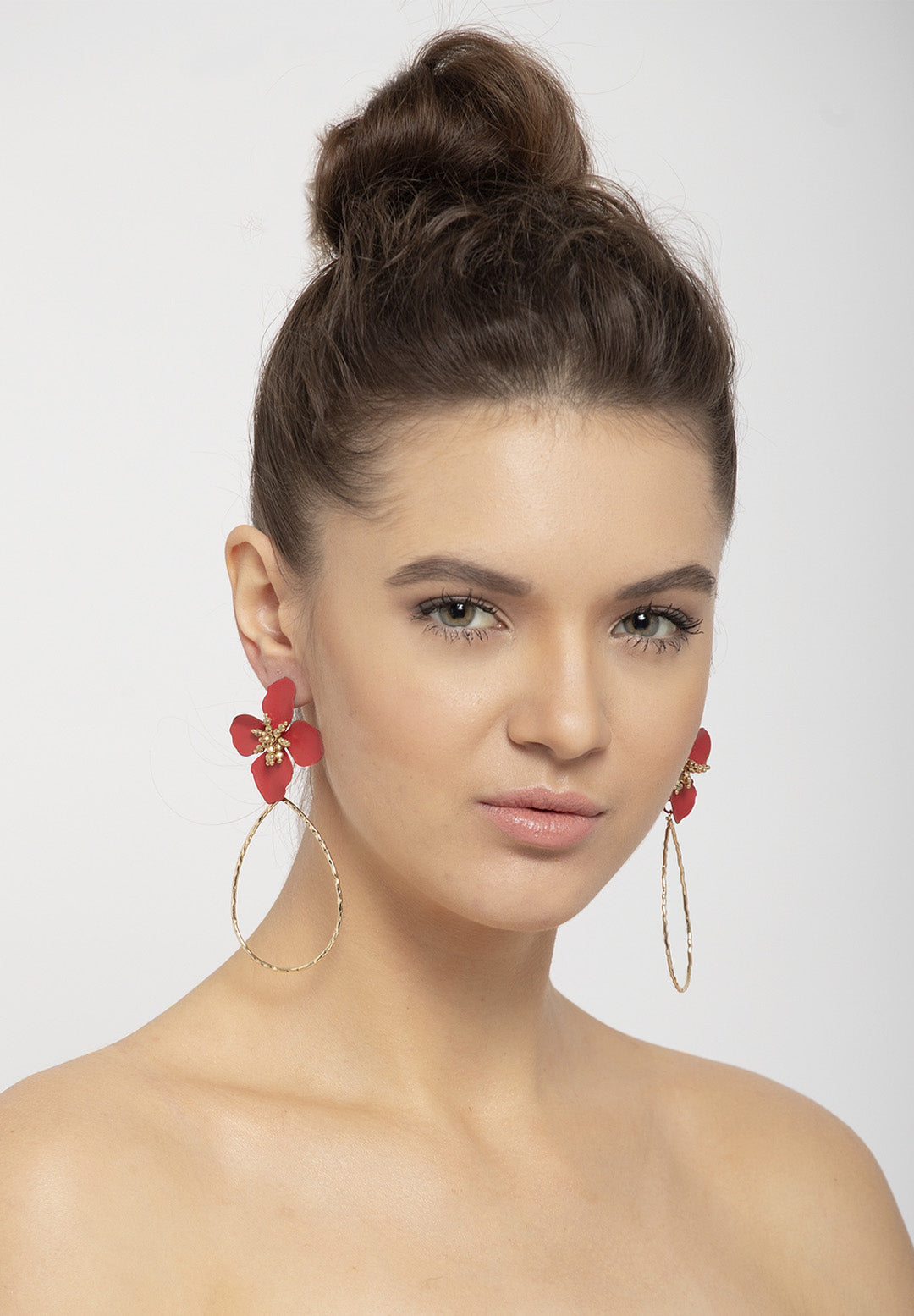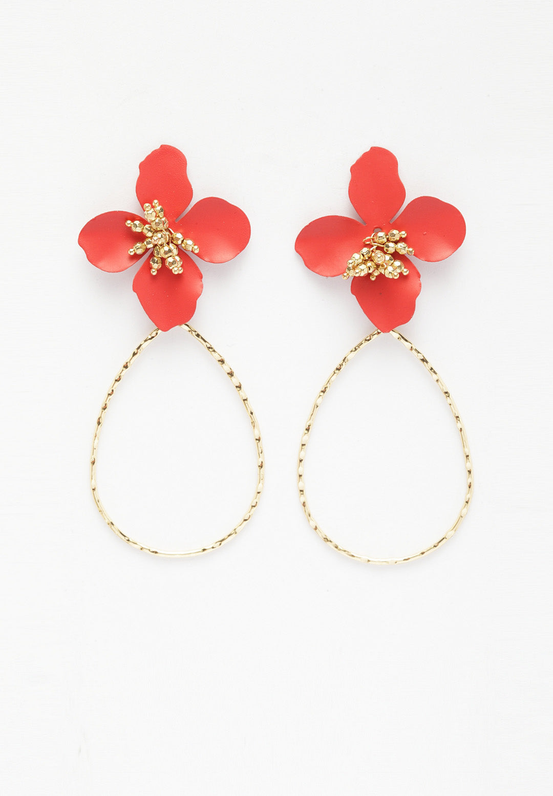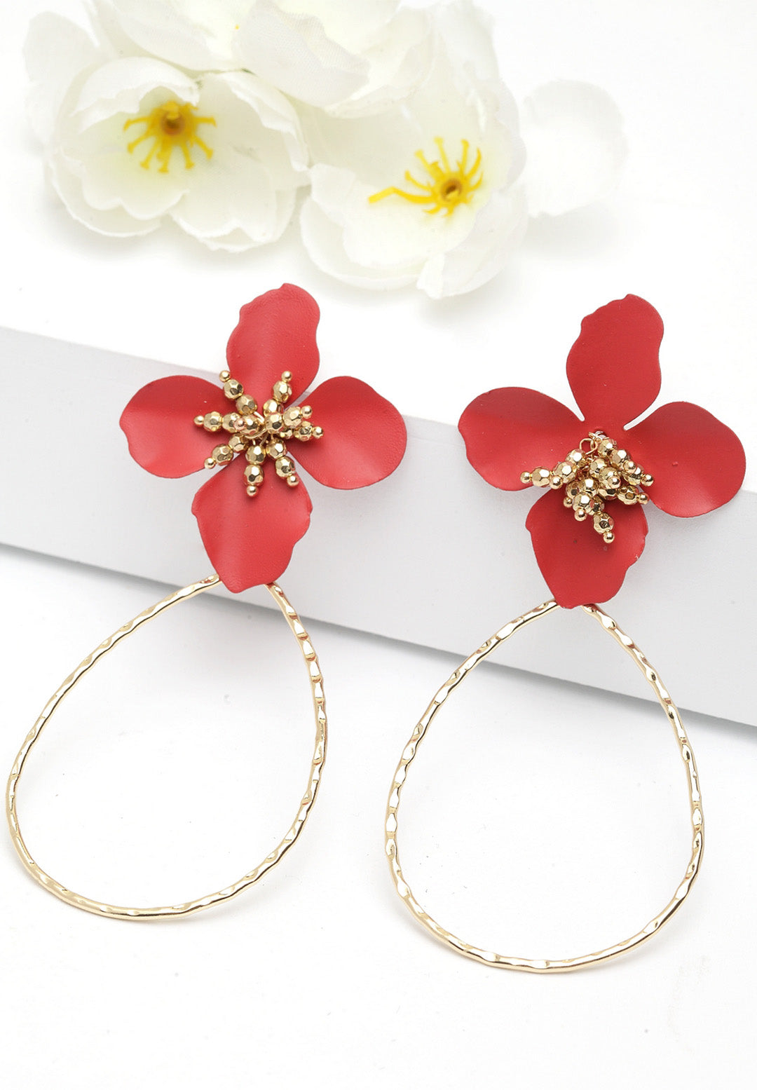 Moins c'est plus avec ces boucles d'oreilles plaquées or, au design minimaliste et exquis - fleur aux belles nuances mates et perles et cerclée d'un fil doré. Il peut être porté avec des tenues décontractées, formelles et même avec des robes.